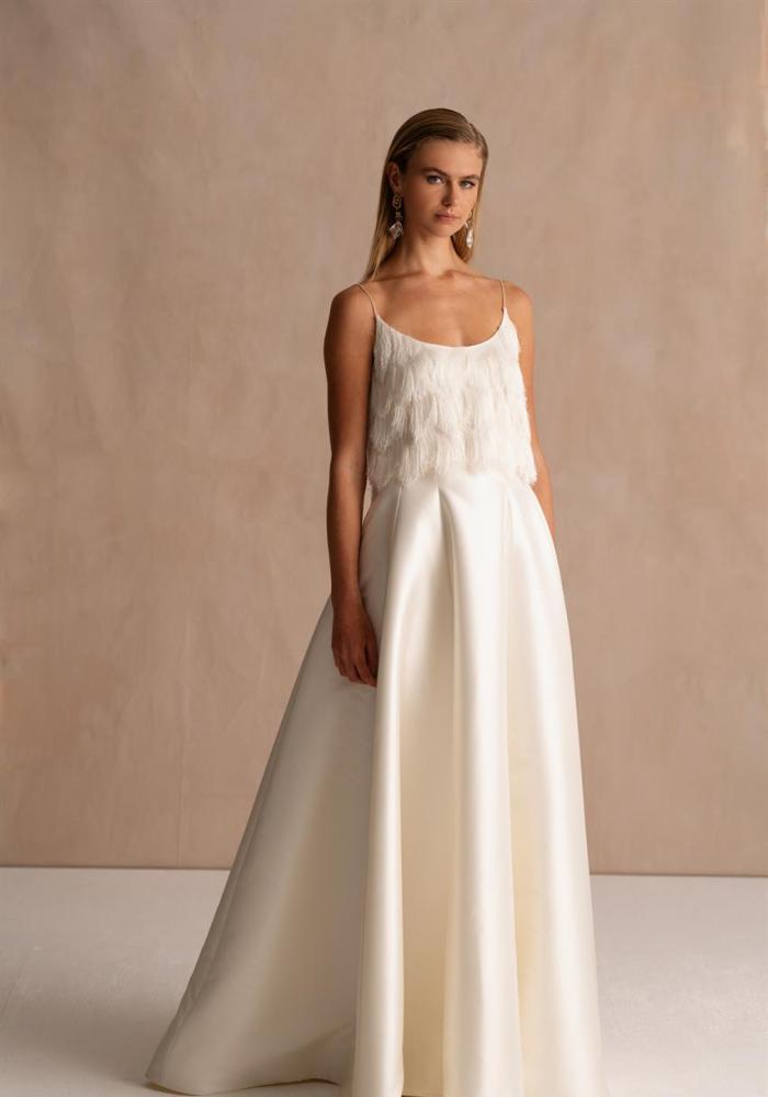 Das Mix & Match Brautkleid eröffnet dir grenzenlose Möglichkeiten für deinen persönlichen Brautlook. Kombiniere verschiedene Oberteile und Röcke oder Hosen zu deinem Traumkleid und erschaffe so dein einzigartiges Design. Diese moderne Form der Brautmode lässt dich zum Designer deines eigenen Kleides werden – eine kreative Art, deinen individuellen Stil zum Ausdruck zu bringen.